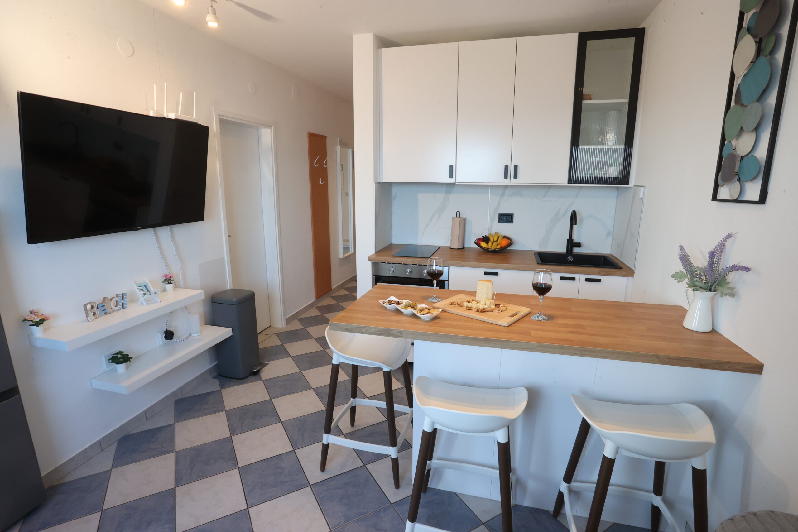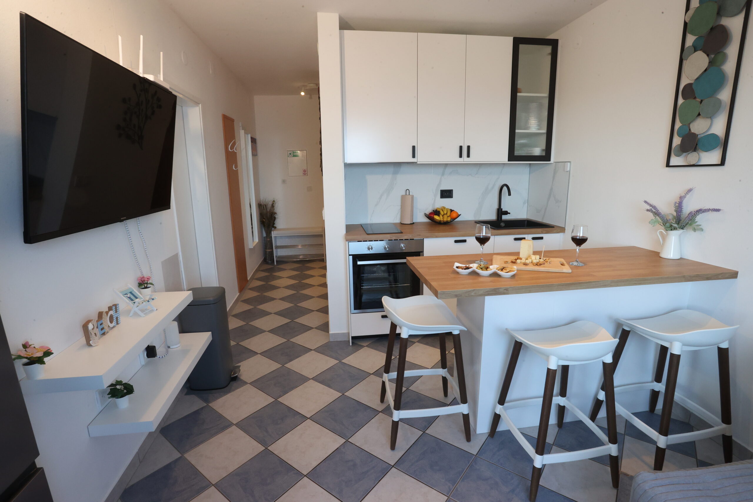 Free private parking is available on site, so you can arrive by car without worry. Our apartment is the perfect choice for couples or small families who want a peaceful location, sea views and easy access to the beach, while still being close to all the amenities needed for a memorable holiday on Čiovo.