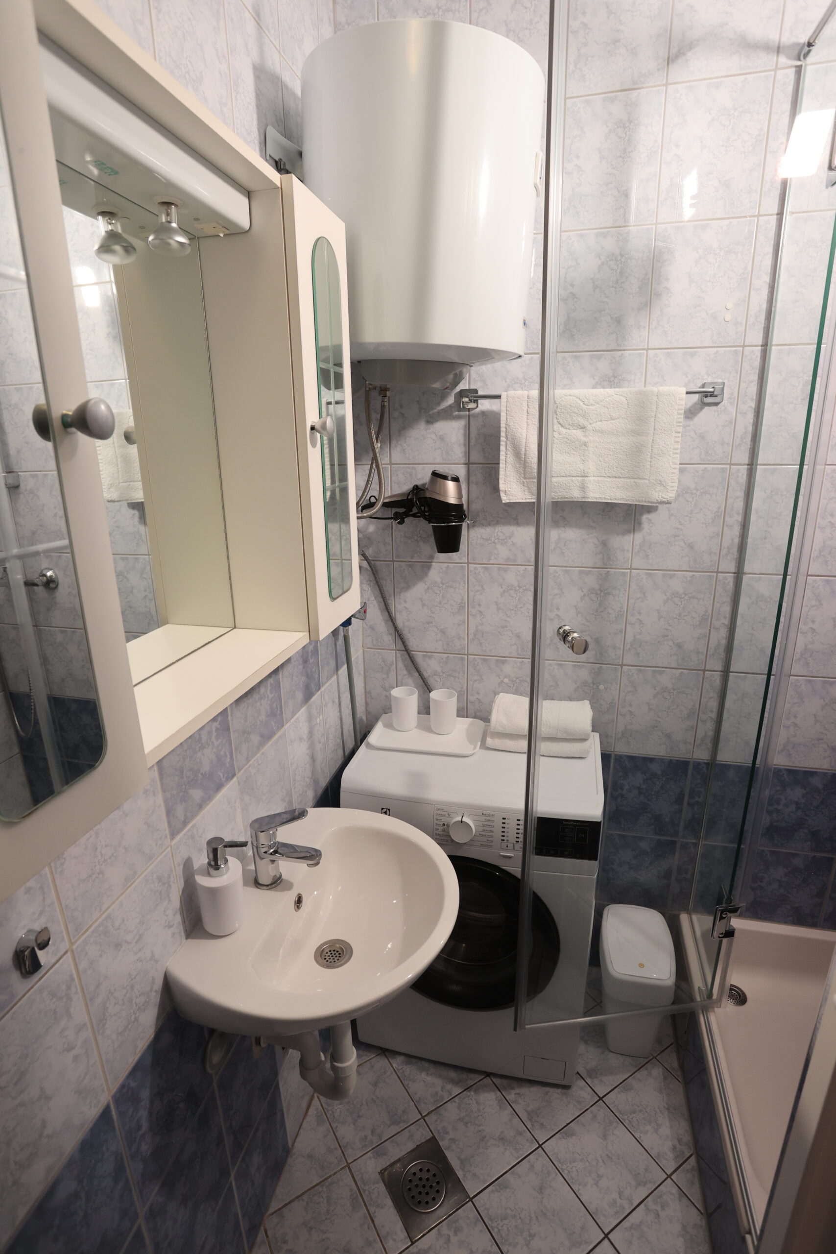 Our cozy one-room apartment is located in Okrug Gornji, in a quiet area ideal for a relaxing seaside holiday. It offers air conditioning, WiFi, SAT TV and a fully equipped kitchen, providing everything you need for a comfortable stay. In the bathroom you will also find a washing machine, which is especially convenient for longer visits.